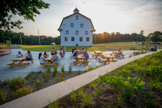 Host of Farm to Fork, Chatham’s Eden Hall is not your usual college campus. It’s a literal rural working farm and hub for sustainability, food entrepreneurs, soil health research, and a celebrated Food Studies program, just to name a few. Some of the things you’ll find there are a residence hall for its sustainability, environmental science, and food studies students, fruit orchards, greenhouses, and an amazing dining hall that not only feeds their faculty and students but is also open to the public. There is a kitchen lab and teaching and events spaces with a large two-story living wall. Their Farm to Fork series is just one example of their partnerships and strategies to connect their campus to the broader community and serve it in an impactful way. Dean of the Falk School of Sustainability and Environment Lou Leonard likes to describe Eden Hall as “a place for learning, experimentation, and community connection.”